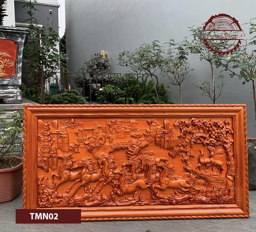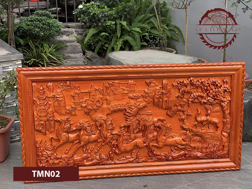 - Tranh đục Mã đáo thành công gỗ hương đỏ TMN02 hay còn có tên gọi khác là tranh bát mã hay tranh bát mã đồ. Loại tranh này được nhiều người ví von là bức tranh được yêu thích nhất mọi thời đại.