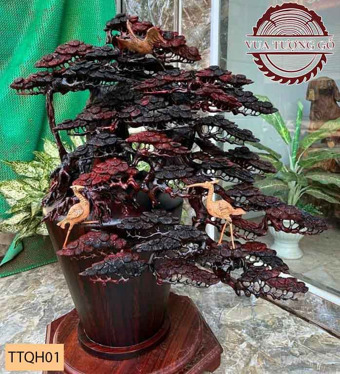 - Tượng đàn chim hạc đậu trên cây tùng TTQH01 được làm từ chất liệu gỗ trắc – một loại gỗ quý hiếm nhất hiện nay.