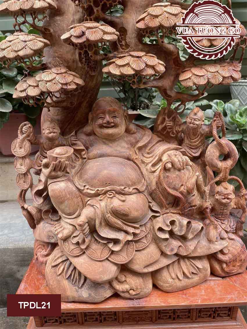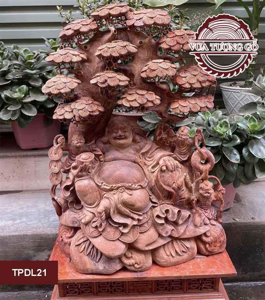 Tượng Di Lặc ngồi gốc tùng gỗ hương Việt TPDL21